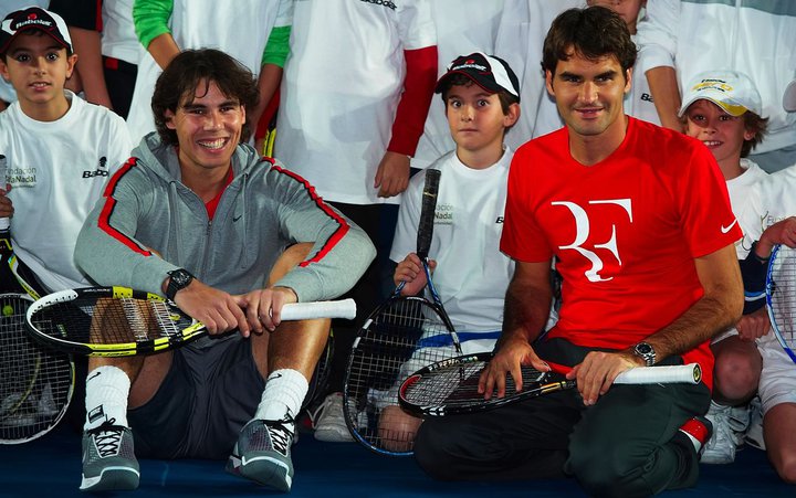 Tegnap, még a bemutató előtt Roger és Rafa a madridi gyerekeknek is örömöt okozott, ugyanis ütögetett velük egy kicsit. A képeken látszik, hogy mekkora sor van, mert mindenki akar velük játszani egy kicsit :)